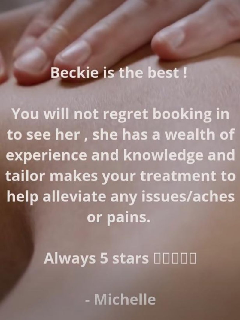 All of the above can be supported with nutritional advice if required. Beckie has an ITEC Level 3 Nutritional qualification which enables her to help you with some specialist diets and provide nutritional advice - including vitamins and supplements, as well as diet plans with regards to general health and well-being.